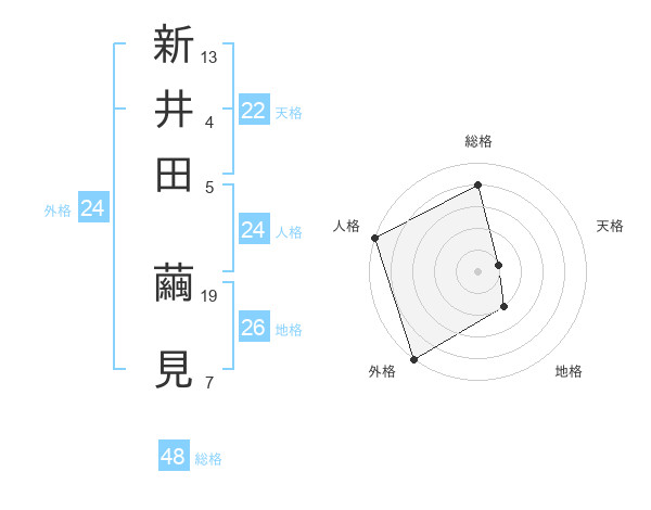 新井田 繭見さんの外格は24画の5点!