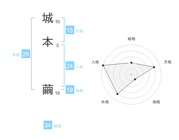 城本 繭さんの人格は24画の5点!