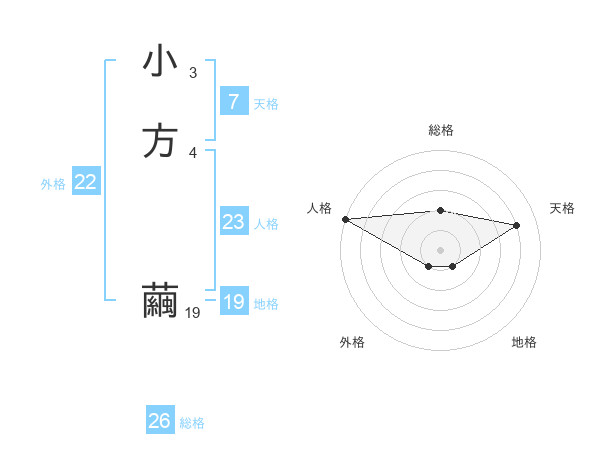 小方 繭さんの総格は26画の2点!
