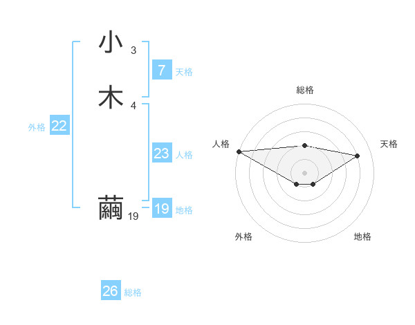 小木 繭さんの総格は26画の2点!