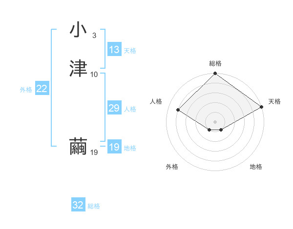 小津 繭さんの総格は32画の5点!