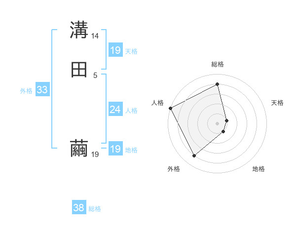 溝田 繭さんの総格は38画の4点!