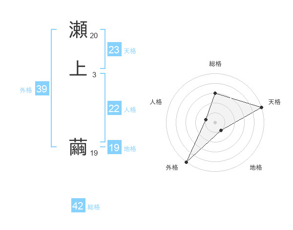 瀬上 繭さんの天格は23画の5点!