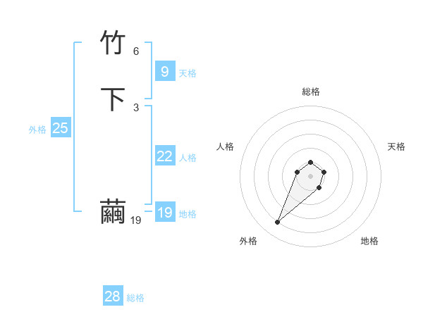 竹下 繭さんの総格は28画の1点!