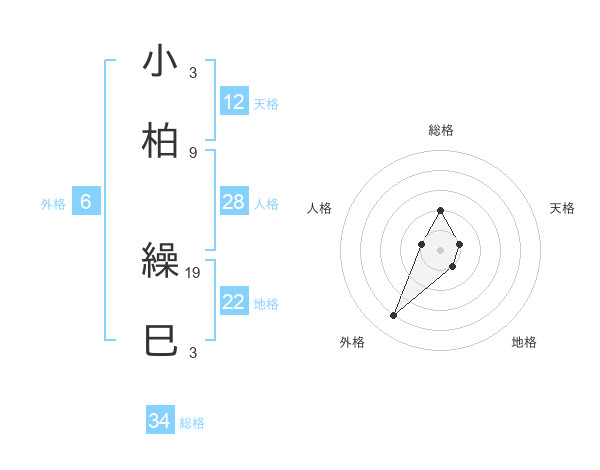 小柏 繰巳さんの天格は12画の1点!