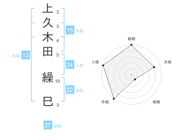 上久木田 繰巳さんの総格は37画の5点!