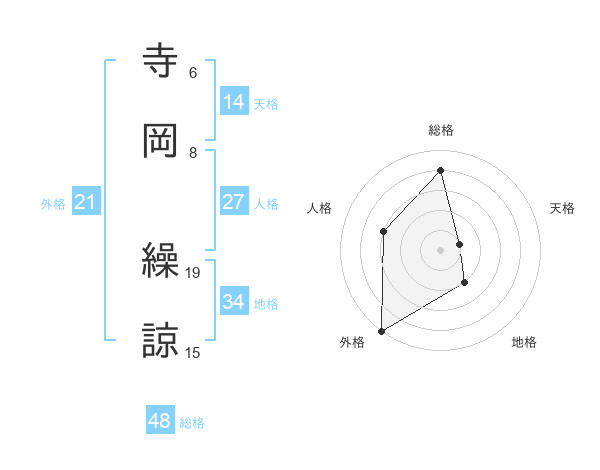 寺岡 繰諒さんの総格は48画の4点!