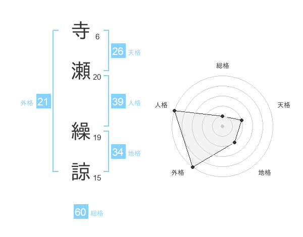 寺瀬 繰諒さんの総格は60画の1点!
