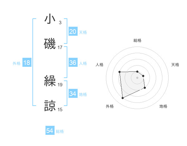 小磯 繰諒さんの天格は20画の1点!