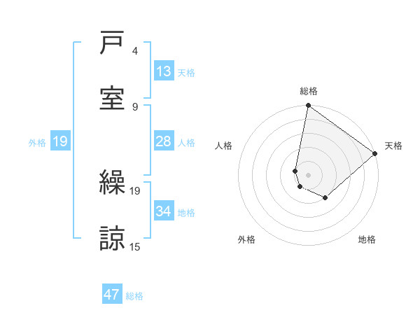 戸室 繰諒さんの総格は47画の5点!