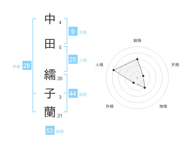 中田 繻子蘭さんを姓名の画数から五運を鑑定