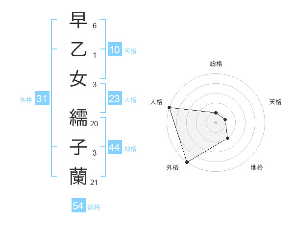 早乙女 繻子蘭さんを姓名の画数から五運を鑑定