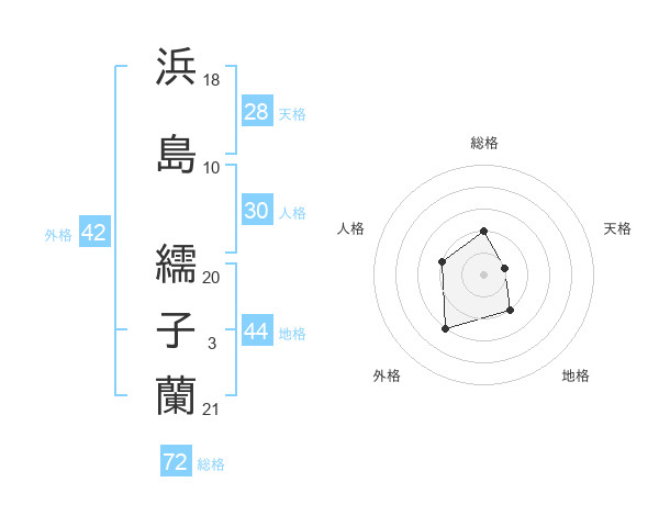 浜島 繻子蘭さんの総格は72画の2点!