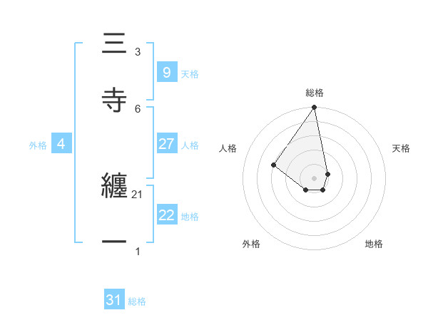 三寺 纏一さんを姓名の画数から五運を鑑定