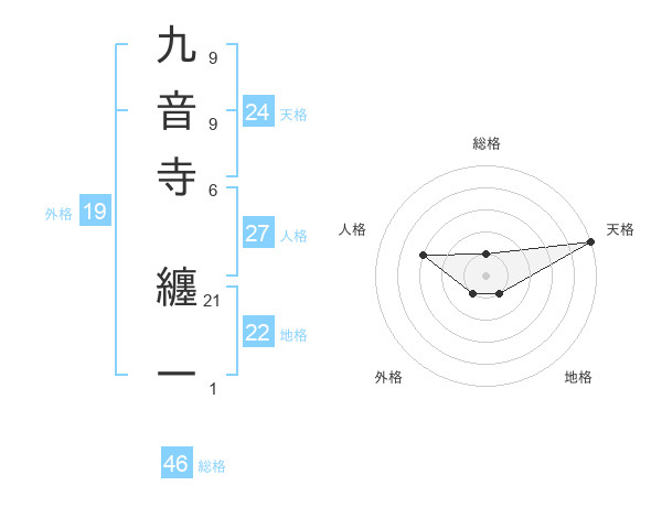 九音寺 纏一さんの総格は46画の1点!