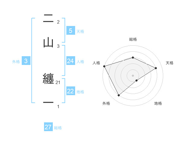 二山 纏一さんの地格は22画の1点!
