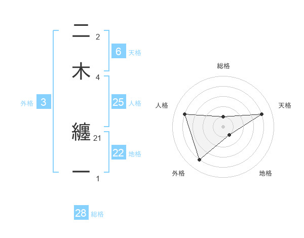 二木 纏一さんの外格は3画の4点!