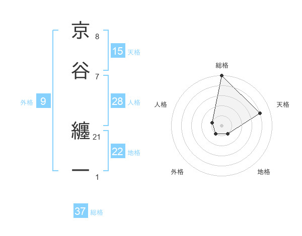 京谷 纏一さんの総格は37画の5点!