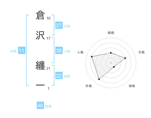 倉沢 纏一さんの天格は27画の3点!