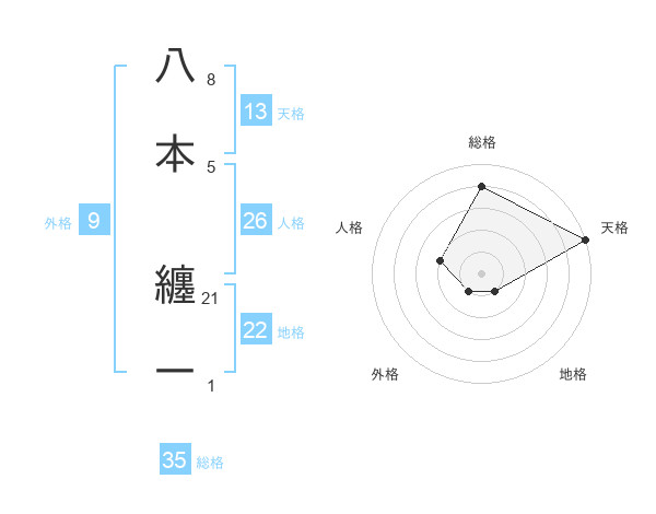 八本 纏一さんの総格は35画の4点!