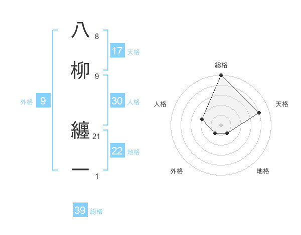 八柳 纏一さんを姓名の画数から五運を鑑定