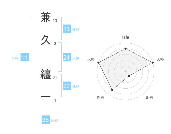 兼久 纏一さんの総格は35画の4点!