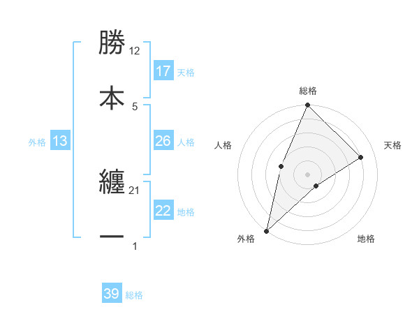 勝本 纏一さんを姓名の画数から五運を鑑定