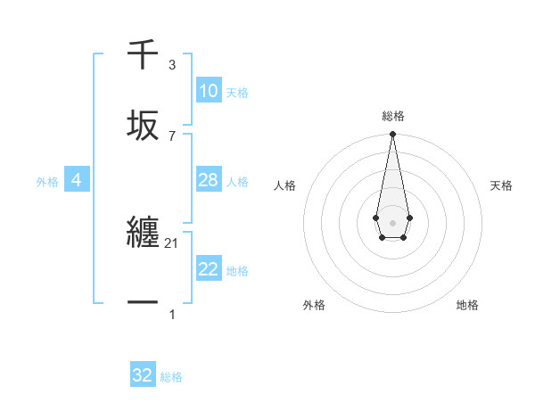 千坂 纏一さんを姓名の画数から五運を鑑定