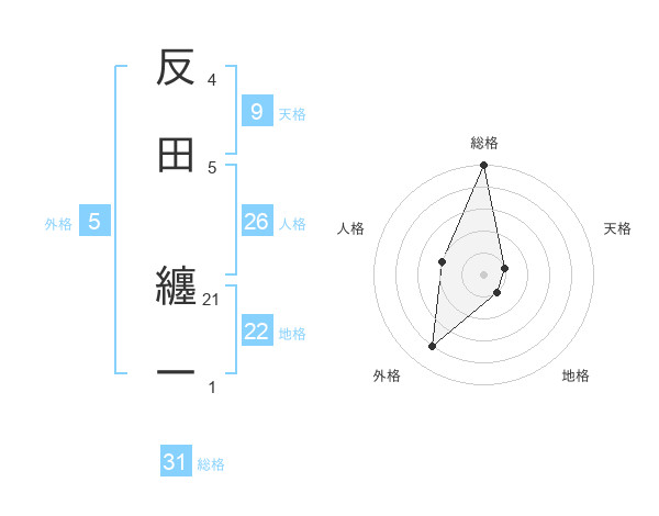 反田 纏一さんの総格は31画の5点!