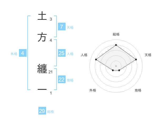 土方 纏一さんの総格は29画の4点!
