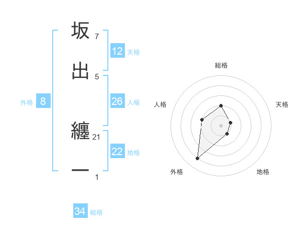 坂出 纏一さんの地格は22画の1点!