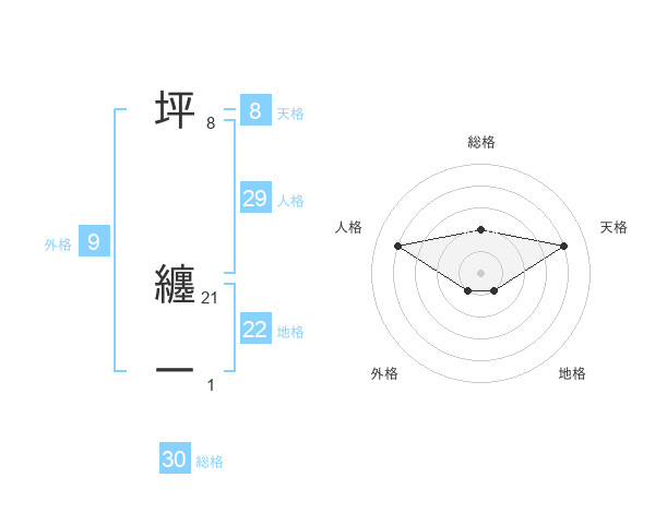 坪 纏一さんの総格は30画の2点!
