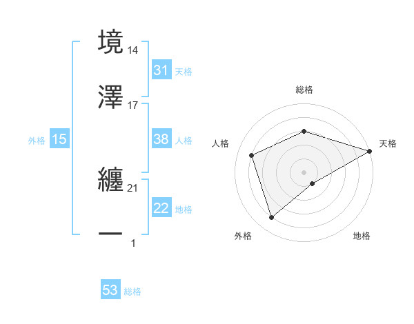 境澤 纏一さんの総格は53画の3点!