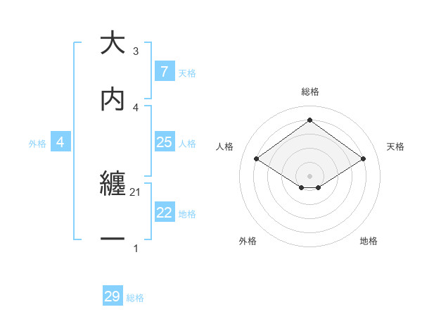大内 纏一さんの総格は29画の4点!