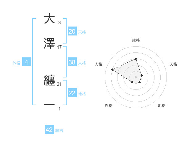 大澤 纏一さんを姓名の画数から五運を鑑定