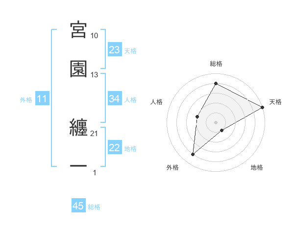 宮園 纏一さんの総格は45画の4点!