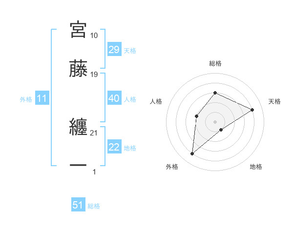 宮藤 纏一さんの総格は51画の3点!