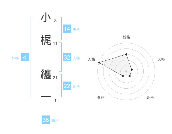 小梶 纏一さんを姓名の画数から五運を鑑定