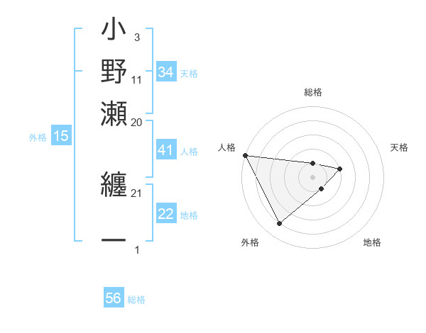 小野瀬 纏一さんを姓名の画数から五運を鑑定