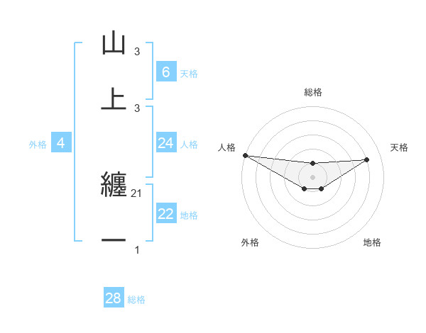 山上 纏一さんの総格は28画の1点