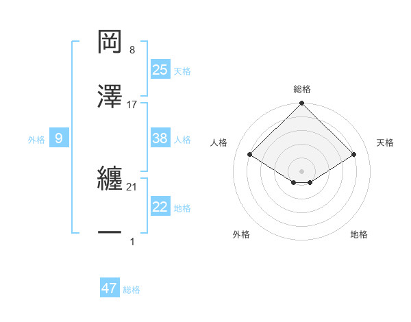 岡澤 纏一さんを姓名の画数から五運を鑑定