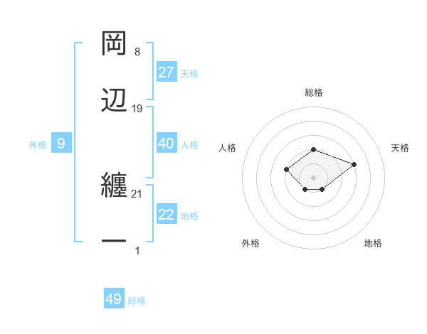 岡辺 纏一さんの総格は49画の2点!