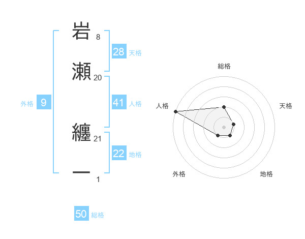 岩瀬 纏一さんの総格は50画の2点!