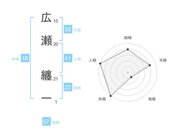 広瀬 纏一さんを姓名の画数から五運を鑑定