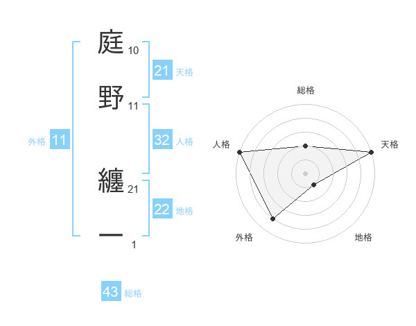 庭野 纏一さんの地格は22画の1点!