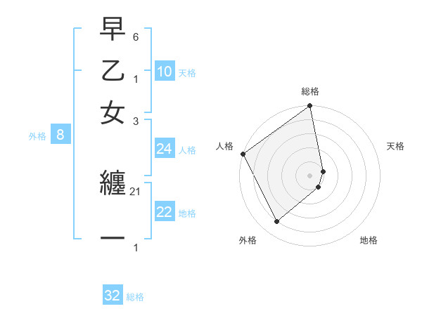 早乙女 纏一さんを姓名の画数から五運を鑑定