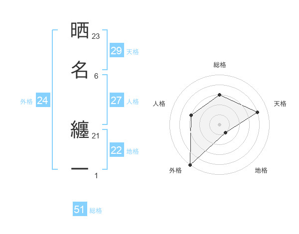 晒名 纏一さんの総格は51画の3点!