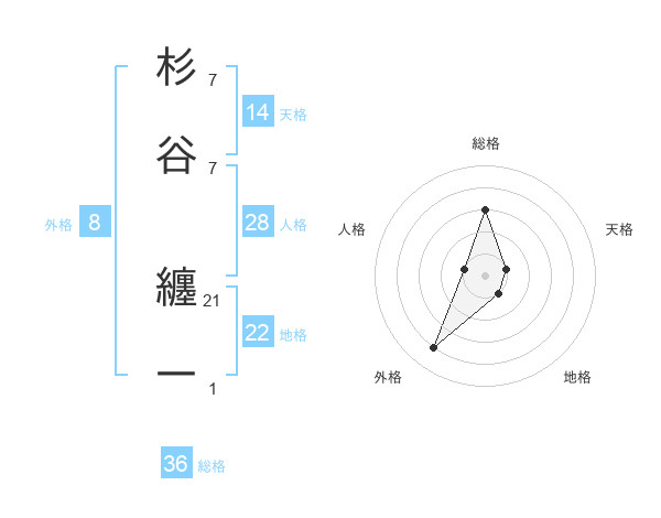杉谷 纏一さんの地格は22画の1点!