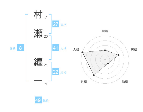 村瀬 纏一さんを姓名の画数から五運を鑑定