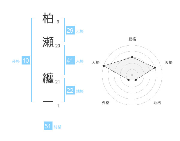 柏瀬 纏一さんの総格は51画の3点!